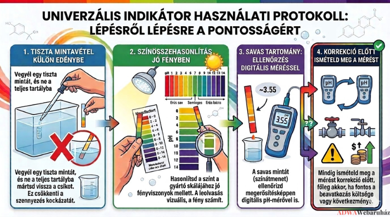 Az univerzál indikátor jó belépőszint, de ha rendszeresen mérsz, vagy döntést is hozol az eredményből, digitális műszer kell. A három ajánlott ADWA termék nem ugyanarra a helyzetre való, ezért érdemes felhasználás szerint választani.